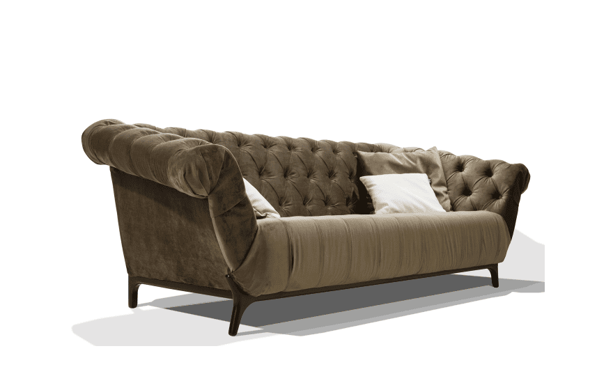 Диван декорований студійної піковкою в стилі "капітоне", прикрашений ґудзиками, що додає йому особливого шарму, об'ємності і м'якості.