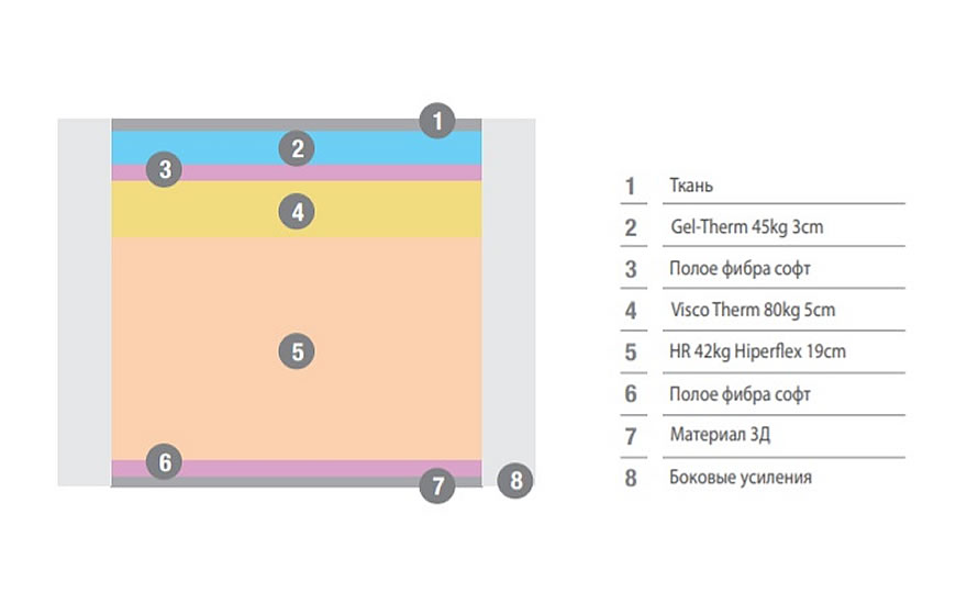 Піна Gel Therm з терморегуляціонная властивостями запобігає перегріванню тіла під час сну, забезпечуючи комфортний сон навіть самим чутливим до перепадів температур людям. |