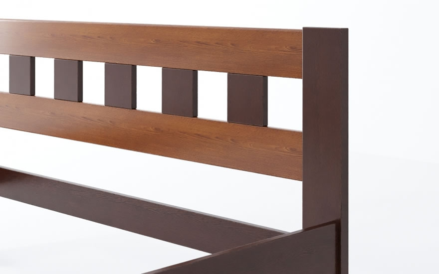 Виготовлена ліжко з натурального дерева - масиву дуба, покривається екологічним і безпечним лаком.