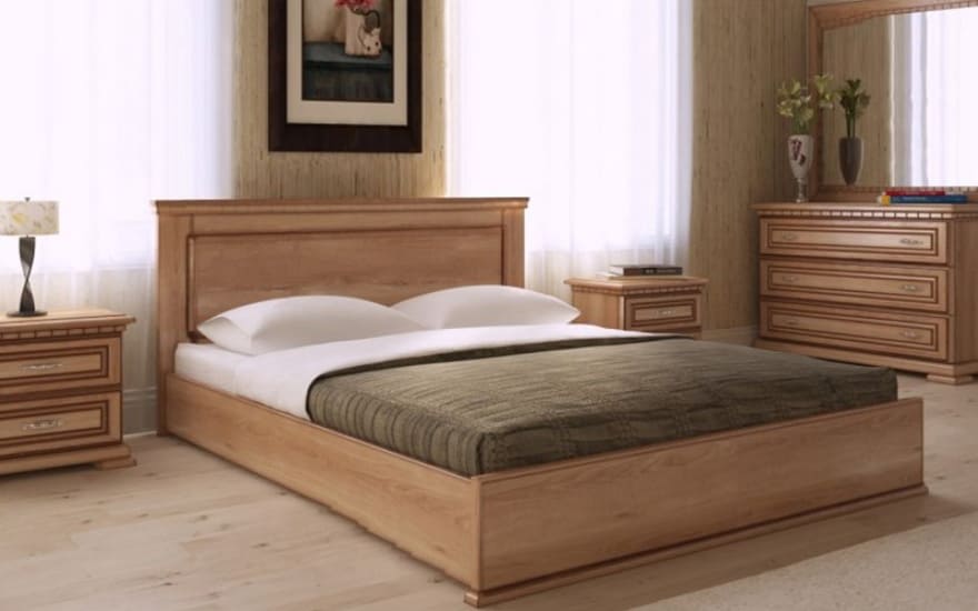 Ліжко виконане з масиву натурального дерева дуб, що гарантує виробу міцність і довговічність. Дерево покрите високоякісними італійськими лаками без токсичних домішок, завдяки цьому покриттю створюється ефект воскуванням поверхні.