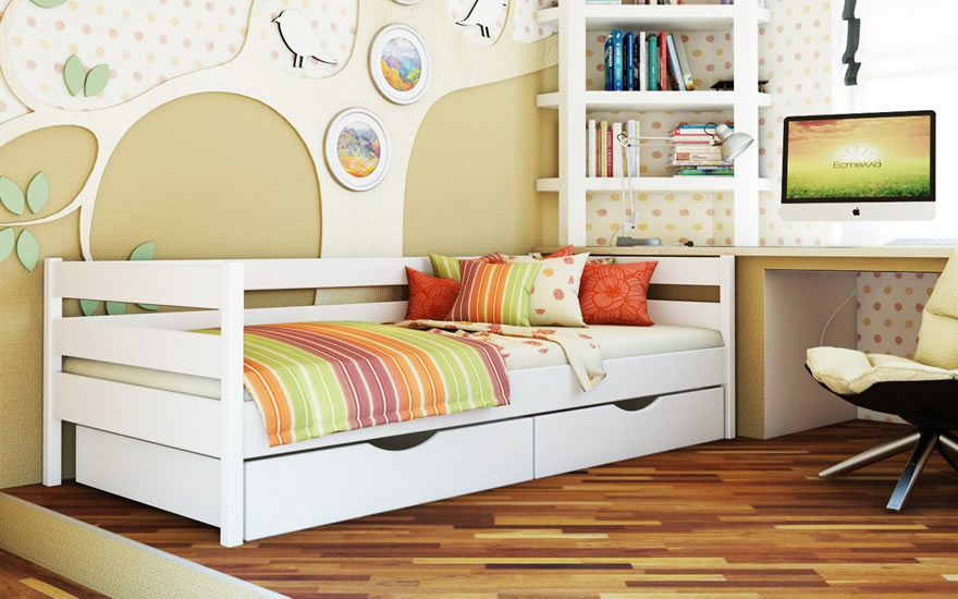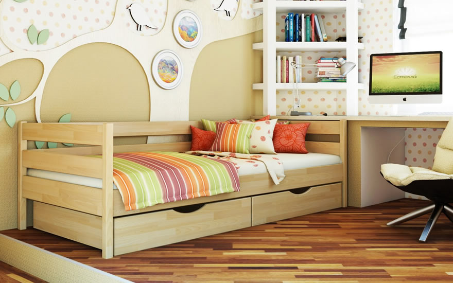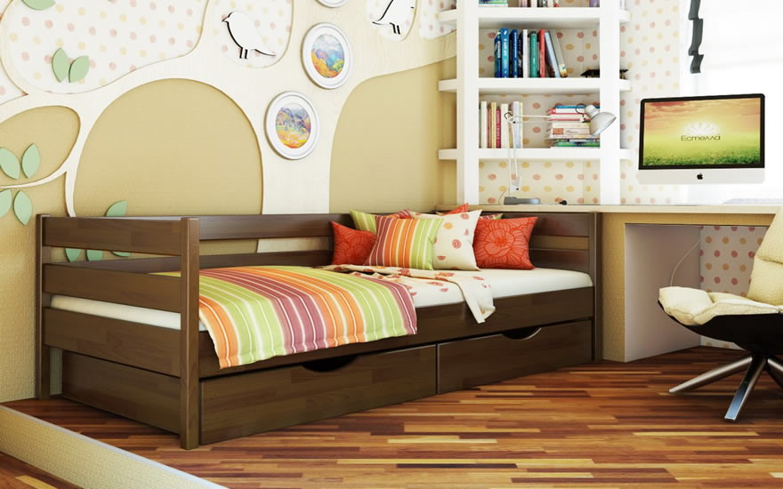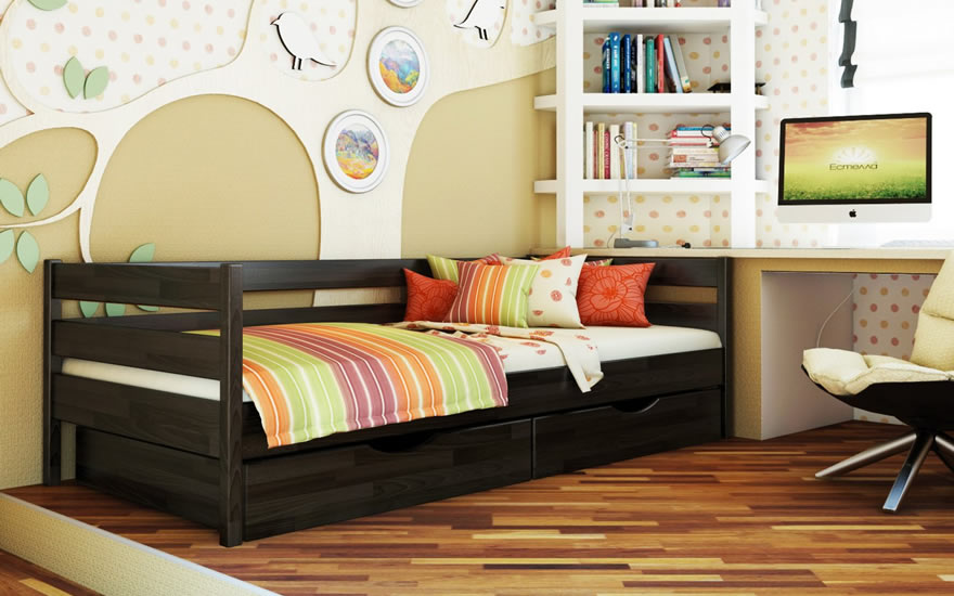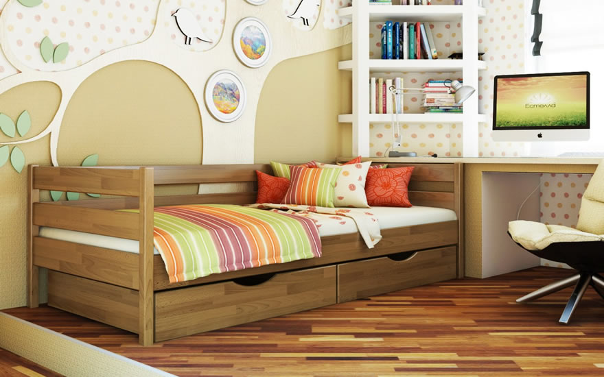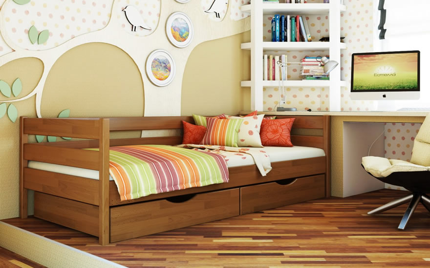 Фабрика виробник ліжок із дерева з мякою спинкою Woodsoft