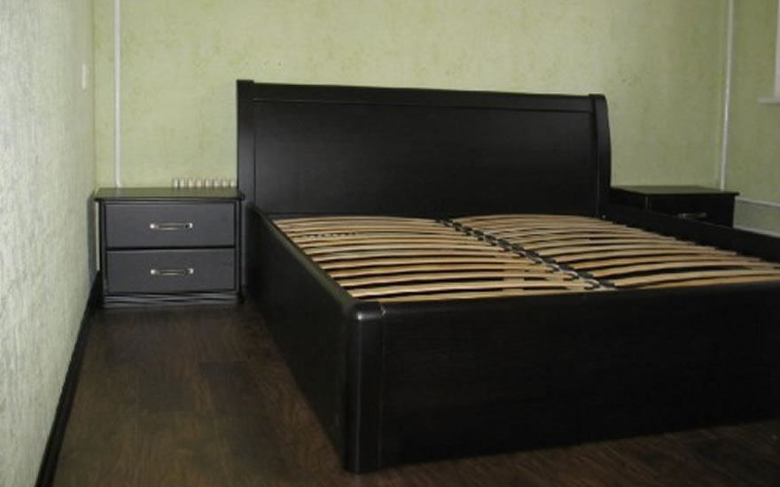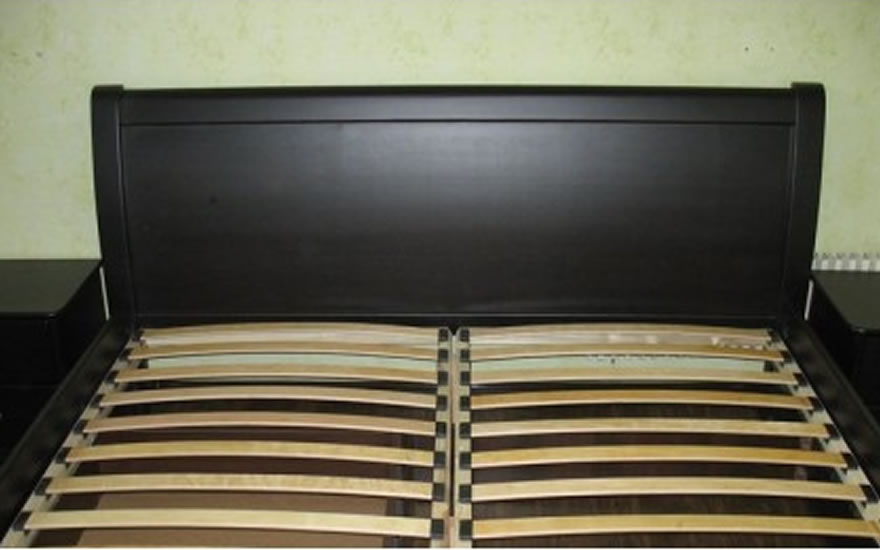 Ліжко виготовлено з натурального дерева: каркас, узголів'я - з масиву вільхи+шпон.