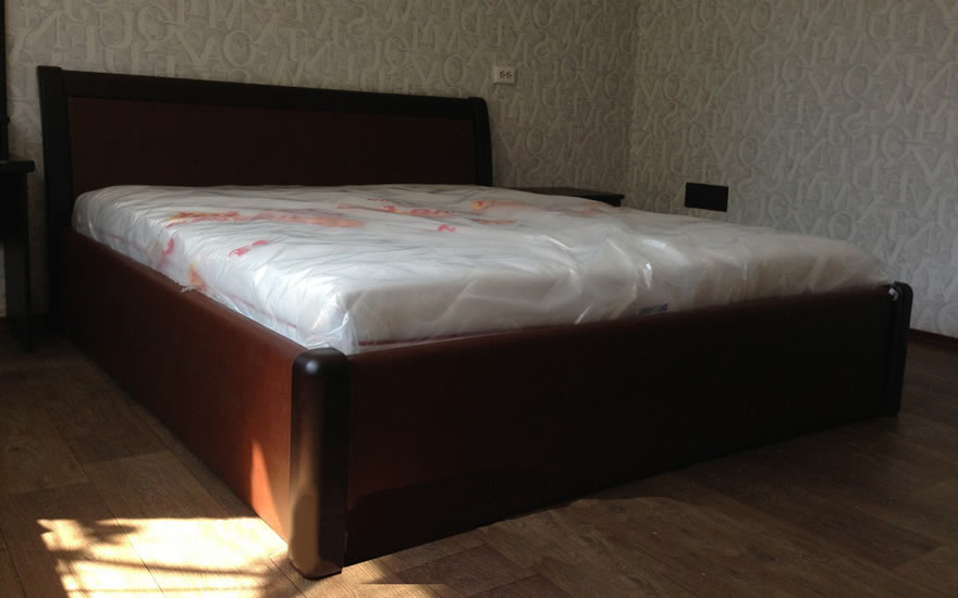 Фабрика виробник ліжок із дерева з мякою спинкою Woodsoft