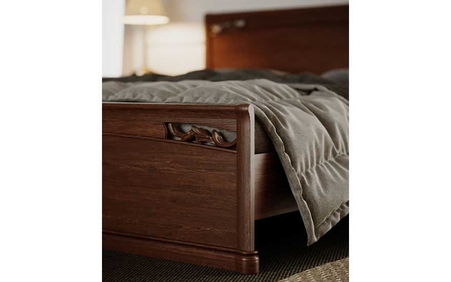 Ліжко виготовлено з натурального дерева: каркас, уузголів'я, узніжжя - з масиву дуба.