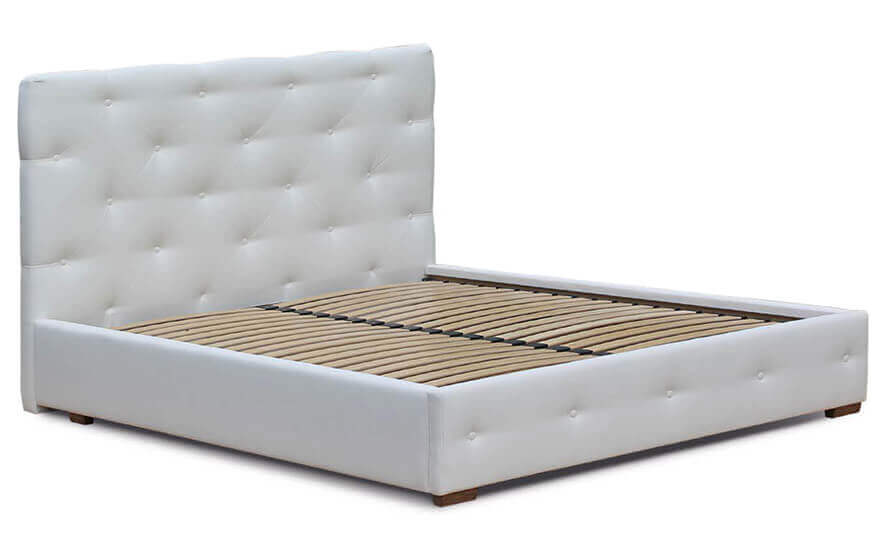 Каркас виготовлений з шліфованого ДСП першого гатунку. Основа вкладна металева, з кроком між ламелями 4,5-5 см (ортопедичні букові ламелі).
