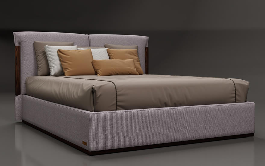 • Стильне ліжко Американо - ліжко в м'якій оббивці з вишуканої тканини, з об'ємним узголів'ям і накладками та рамкою по периметру з натурального дерева. Ліжко виглядає дорого і дуже привабливо, прикрашаючи собою інтер'єр сучасної спальної кімнати.