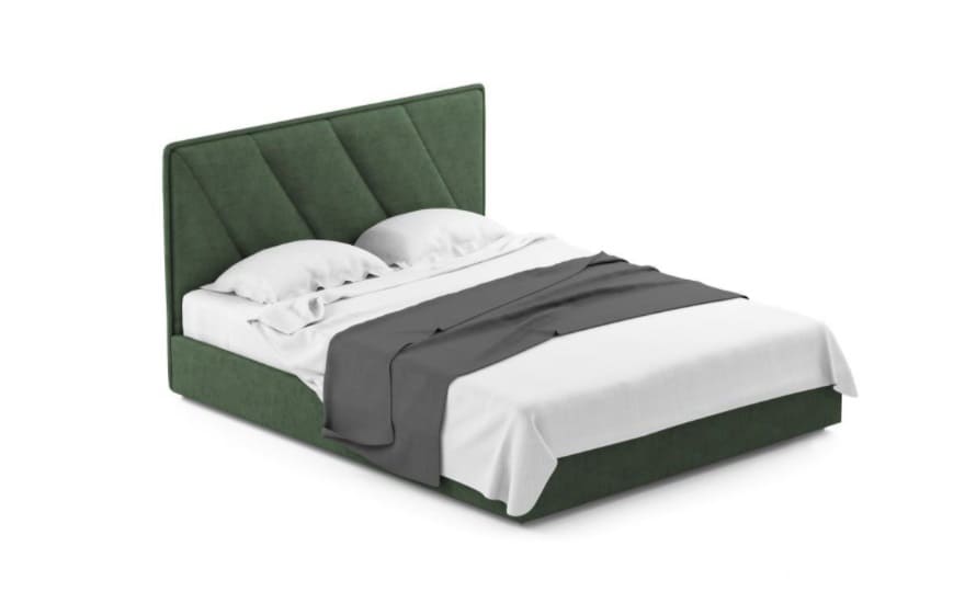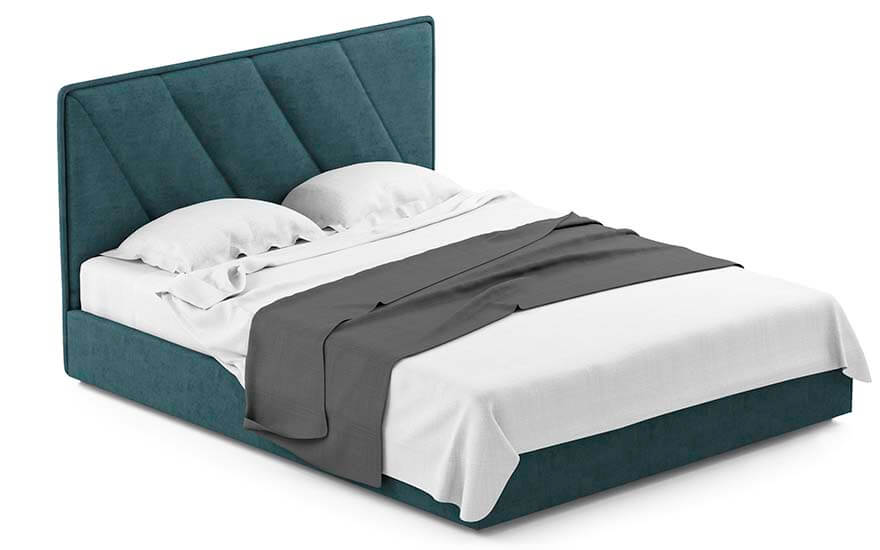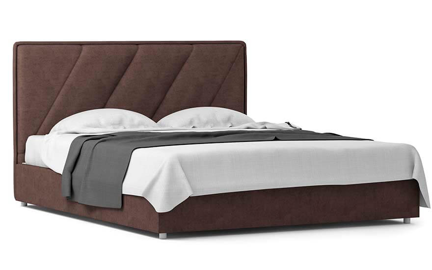 Стильний дизайн узголів'я наділений плавними лініями, пухнастою об'ємної подушкою, простьобаний діагональними лініями. Підстава ліжка в тон головах доповнює і завершує індивідуальність дизайну.