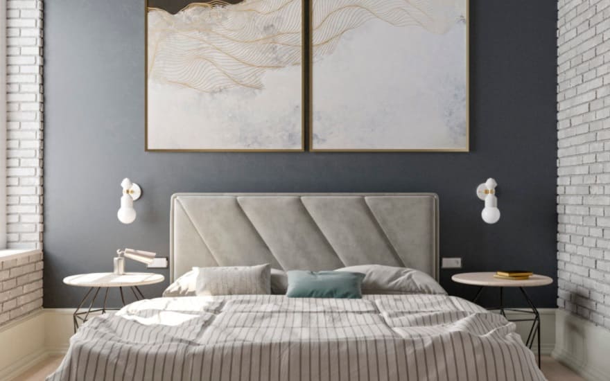Синій колір в обстановці спальні