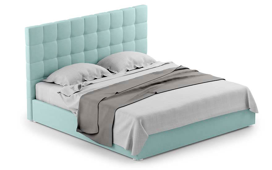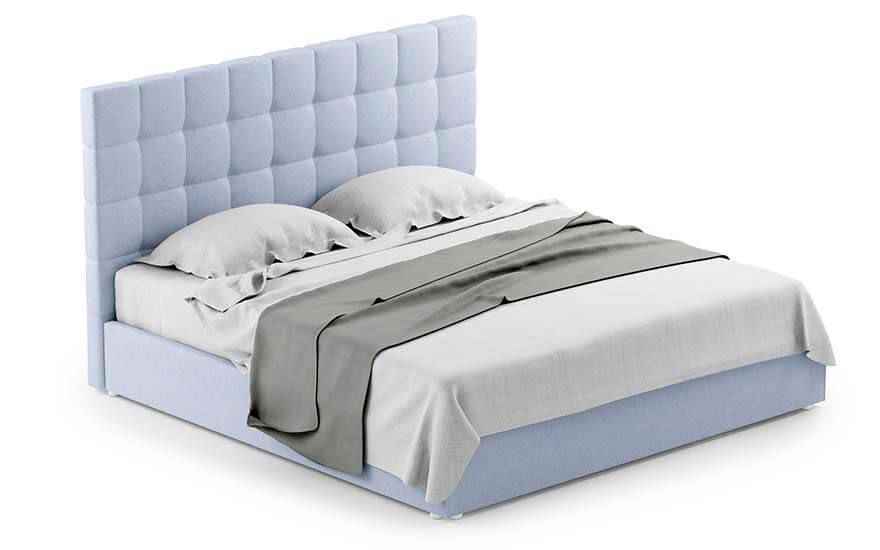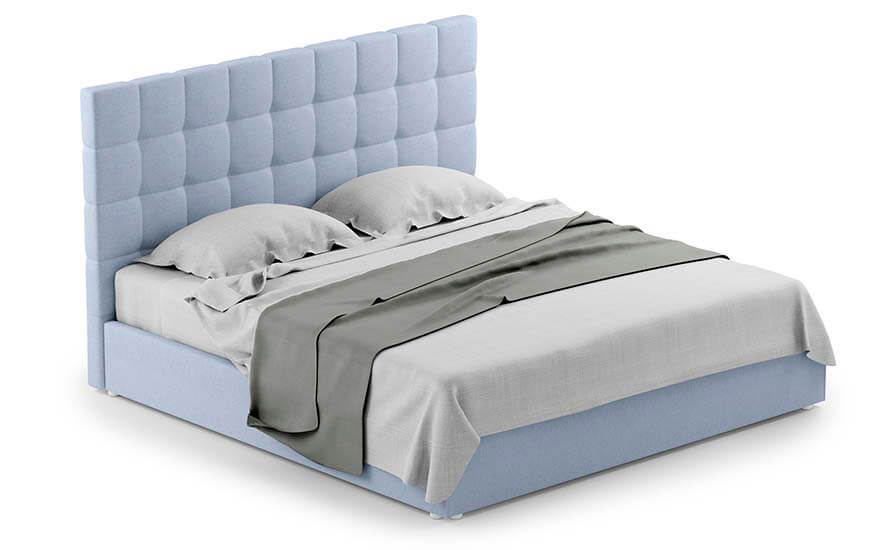 Стильний дизайн узголів'я наділений плавними лініями, оригінальною видовженістю кутів і пухнастою об'ємної подушкою, простьобаний великими квадратами. Підстава ліжка в тон головах доповнює і завершує індивідуальність дизайну.