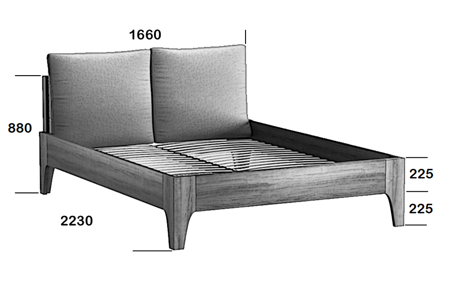Завдяки посиленій дерев'яного каркаса з гнутоклеєних ламелями, досягається ортопедичний ефект, який дає можливість повноцінного відпочинку і анатомічно правильного положення тіла, без пережимів судин і зсувів хребців. Сон на такому ліжку гарантує повноцінне відновлення сил.