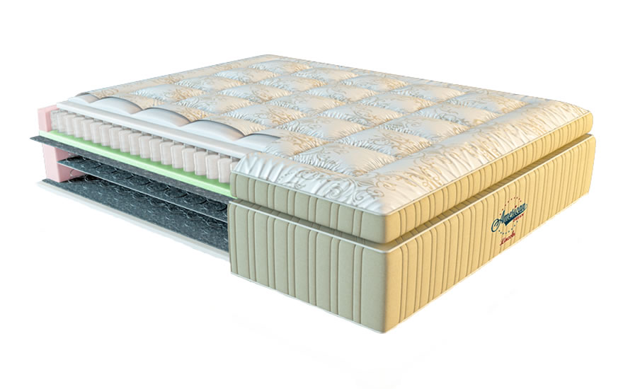 Чохол матраца пошитий з каліфорнійської віскози високої якості, що є втіленням ідеального спального місця. Оригінальний малюнок прошивки матраца створює розкішний рельєф ліній і легкий обсяг, що робить його самим справжнім витвором мистецтва. Дуже м'яка і делікатна на дотик, віскоза - 100% натуральна, міцна і міцна тканина, яка до того ж не накопичує статичну електрику, а також стійка до забруднення і деформації. |