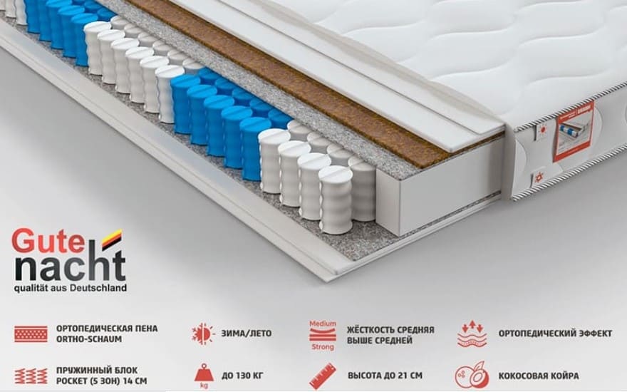 Натуральний зносостійкий матеріал. Захищає м'які шари матраца від дії пружин. Рівномірно розподіляє навантаження на пружинний блок, продовжує термін служби матраца.