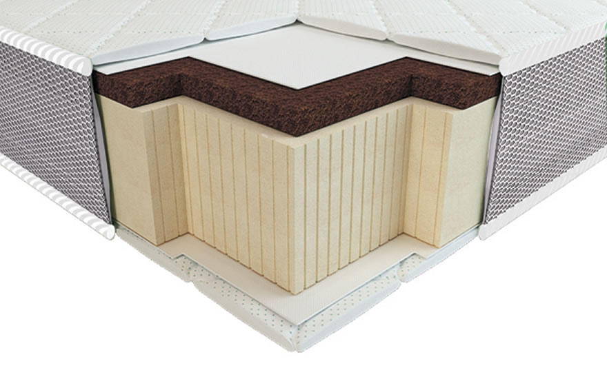 Латексована кокосова койра - натруальний природний матеріал, що володіє еластичністю і повітропроникністю, характеризується довговічністю, стійкістю до деформацій і високих навантажень. Використовується для збільшення жорсткості поверхні матраца.