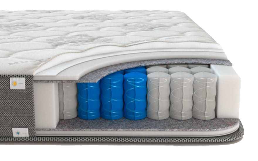 В основі ортопедичного матраца блок незалежних пружин "Universal pocket spring" з 5-ма зонами комфорту. Кожна пружина блоку укладена в окремий тканинний чохол з спанбонду, завдяки чому забезпечується робота кожної пружини незалежно один від одного. Блок "Universal pocket spring" забезпечує точковий розподіл навантаження на пружинний блок. Кожній ділянці вашого тіла приділяється в кілька разів більше уваги, що дозволяє отримати найвищий ортопедичний ефект спальної поверхні.
