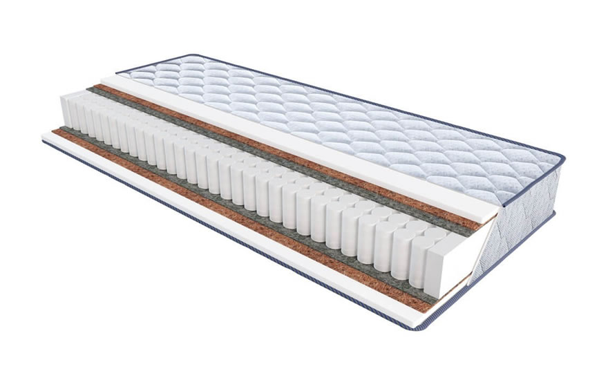 Додаткова жорсткість з двох сторін матраца створюється шляхом використання настилів з латексованої кокосової койри - природного пружного матеріалу, гіпоалергенного, що не піддається впливу грибків, бактерій і пилових кліщів. |