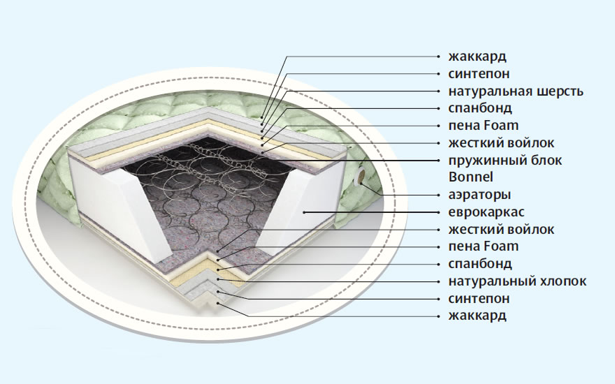 Піна Foam, анатомічно підлаштовуючись під контури тіла людини, що лежить на матраці, забезпечує необхідний рівень комфорту.