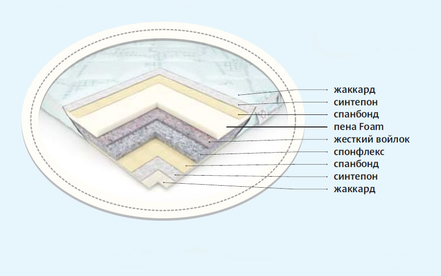 • З одного боку піни Foam - пружного і еластичного матеріалу, здатного підлаштовуватися під атоміческіе особливості тіла людини. Дана сторона м'якша.