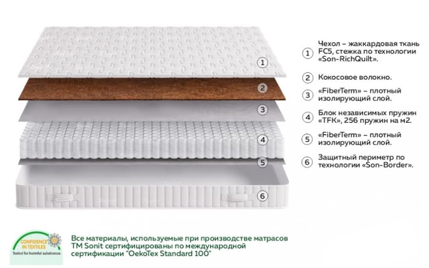 Одним з настильних шарів є кокосова койра "Ko-Si" (Словенія). Це покращене кокосове волокно, завдяки просоченню з натурального латексу. Такий матеріал в матраці забезпечить комфортну жорсткість з дбайливою підтримкою хребта. Койра гіпоалергенна, не вбирає вологу, стійка до появи комах і цвілі всередині матраца, не проводь статичної електрики. |