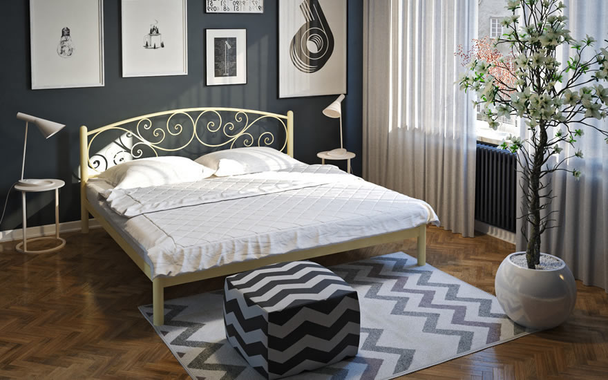 • Металеве ліжко Лілія з красивим узголів'ям, окрасою якого є легкі, витончені завитки, невимушено впишеться в інтер'єр будь-якої спальні.