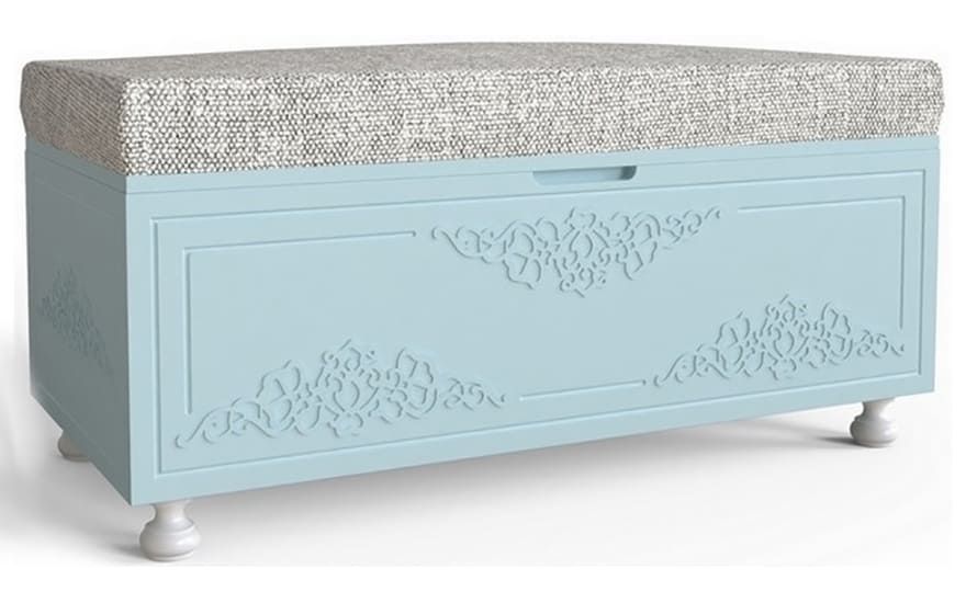 • Довгий пуф з нішею Amelie - це ніжна і романтична модель в стилі сучасної класики, яка буде відмінно виглядати в спальні, вітальні і навіть передпокої.